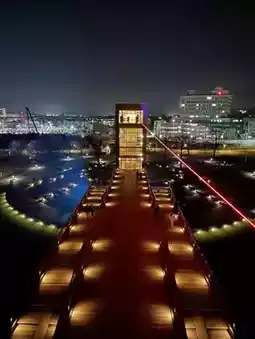 Tenmon Bridge is a symbol of the park, along with the Fountain and Waterfall Square in Fugan Canal Kansui Park. 🪜