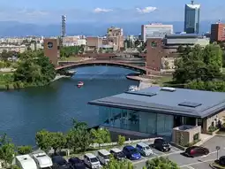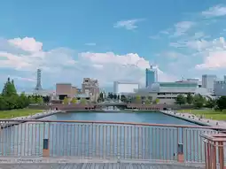 #japantrip It’s a pretty modern sea side park near by Toyama station. It has a beautiful landscape with the big sky. The Starbucks coffee shop in this park is famous for its view. The twin towers on the both side of the bridge used to be connected with the line that allow people to talk from each tower but it’s been removed now because of the Covid.Quiet, peaceful, and spacial park in a convenience location near the Toyama Art Museum and Station. Sport and leisure facilities are enclosed nearby, whereas the famous glass-built cafe shop Starsbuck is located adjacent to the canal of Kansui Park. You must not miss any chance staying for a relaxing day there.