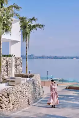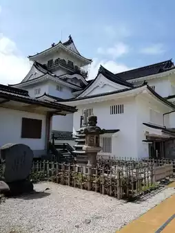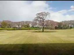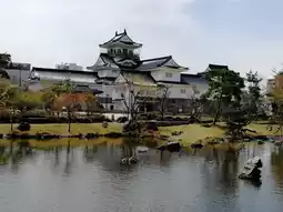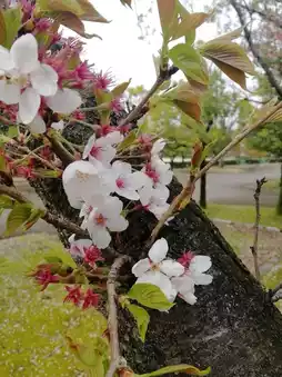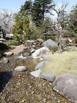 The cherry blossom trees along the Toyama River bank are quite large, but unfortunately, I arrived a few days late. Upon entering the courtyard gate, the first thing I encountered was a reed pond nestled in a grassy slope. Seven or eight ducks had quietly made their home in the lake. As you approach slowly, they begin to question your motives, first turning their heads to glance at you. If you continue to approach, they start to panic, taking a couple of steps towards the water's edge, then jumping in and swimming towards the reeds, leaving you with only their backs. However, they don't actually swim deep into the reeds to hide, but rather swim a short distance, stop, and look back at you, observing your reaction. After all, they aren't really afraid of people.