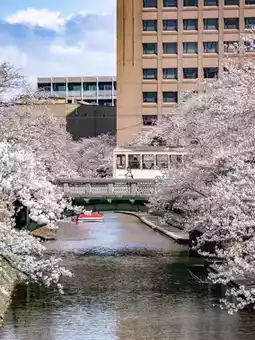 The highlight is the cherry blossom season, when both sides of the canal are lined with cherry blossoms for several kilometers. It's worth taking a walk along the canal to enjoy the view.