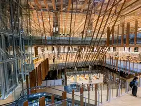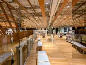 The most special thing about this building is that the first floor is the ticket hall, the second floor is the cultural and creative store, the third to fifth floors are the library area, and the sixth floor is the glass art museum. In other words, the Toyama City Library and the Glass Art Museum are integrated into one.