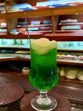 🚟 We're introducing "Blue Train," a retro Japanese cafe in Kashimacho, Toyama, a train-themed cafe that exudes a Japanese small-town vibe. 🍈 From melon cream soda to pudding, this cafe offers a variety of classic Japanese snacks and a charming atmosphere! The cafe is filled with miniature trains of various shapes and is fun to look at, so I hope you go on the Toyama Cafe Tour!