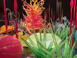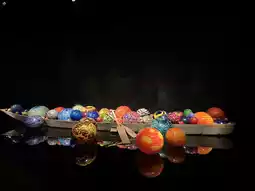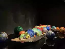 First, you can visit the lobby to feel the architectural atmosphere of wood and glass blending. It is highly recommended to be sure to pay a small entrance fee and walk up to the 3rd and 5th floors to enjoy the glass exhibits. The exhibits are beautifully designed, especially the multi-colored glass balls placed on a wooden boat-shaped display stand under night lighting. While viewing the exhibits, there are light and shadow changes in several corners of the pavilion, making it beautiful to take pictures at any time.
