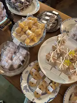 💗 The shop is charmingly decorated in a home café style. While primarily a takeaway shop, there are a few small seating areas in front of the store for customers to enjoy their treats.