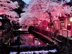Kinosaki is an ancient resort town in the north of Hyogo Prefecture. Surrounded by mountains and the sea, it is beautiful at any time of the year. Sakura blooms here in spring, it is cool in summer and snowy in winter. You can read more about the city on its official website.