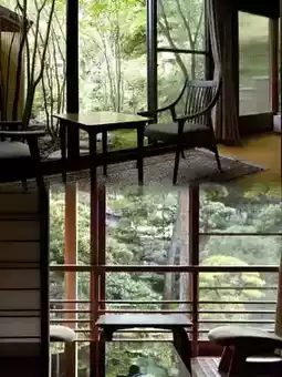 The hotel is a wooden structure with an elegant, rustic charm. It has been weathered by time and blends in with the surrounding natural environment, exuding a sense of tranquility and peace. As I walked into the courtyard, I was greeted by a typical Japanese rock garden, with white sand, unique stone formations, and pine trees swaying gently in the breeze. The sound of birds chirping filled the air, and every corner was full of Zen, making me want to stop and take in the beauty.