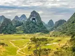This God's eye is not far from Cao Bang, but you have to look at the map well to get there. You can't see anything because of the surrounding mountains, but when you pass the village and go down the narrow, steep road, a truly spectacular view suddenly unfolds. In particular, the fact that the wide plains are together with this perforated mountain makes it even more beautiful and magnificent.