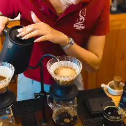 ➡️ Sirichai Cafe & Store This shop is in Sirichai Kantang Hotel. The signature cold menu is served in a can with a self-designed pattern. It's very cool. Inside the shop, there are souvenirs for sale. You can paint a shirt with a pattern that you like.