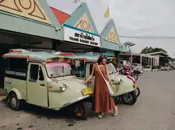 16 Trang Train Station, there are frog-headed tuk-tuks for 250 baht each.
