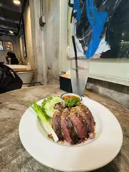 For a great, unpretentious meal, head to Samrub Chaokha, a fusion restaurant in Trang. The atmosphere is incredibly chill and relaxing. The restaurant's modern Thai style is warm and inviting, like dining at a friend's house. The food is meticulously crafted, combining Thai flavors with creative touches. The plates are beautifully presented and photogenic. The menu offers both deliciousness and innovative ideas. The staff are also friendly and helpful, offering personalized recommendations. A leisurely meal like this is what makes a Trang trip extra special. Fusion food lovers should definitely give it a try.