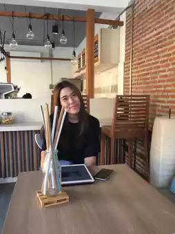 Anyone who visits Trat and is looking for a place to stay near the city center, I highly recommend this place. The name of this place is "Hotel Toscana Trat". It stands out with its bright colors and beautiful building design that impresses at first sight. The highlight that makes everyone want to stay and take pictures here is the bright yellow-orange color of the walls and the large swimming pool in front of the building. Let me tell you that this place is not far from Trat city center. It is easy to travel. Anyone who comes to stay here will definitely be impressed because the bed is soft, the room is clean, and the blanket is soft and warm. Oh my, it's so awesome. Hehe. This place also has a coffee shop. I like the iced cocoa that is not too sweet. Another delicious thing is the iced Thai tea. Sitting and sipping tea while looking at the swimming pool is so awesome.