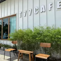 For us cafe lovers, no matter which province we travel to, we can't escape coffee shops. We searched for reviews a lot, lol, until we found T77 Café. We opened the map to find the shop. When we arrived at the shop, we were not disappointed. The shop is very cute. There is a lot of parking. Most importantly, the coffee is very delicious. We ordered a latte, but all coffee menus in this shop do not have sugar. The shop has prepared syrup separately for you to add yourself. At first, I thought it would be bitter, but when I tried the first bite, it was great. The taste is smooth, well-rounded, and not bitter at all. In addition to delicious coffee, the desserts are also delicious. ☕️🥞🍪🍯