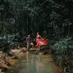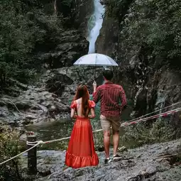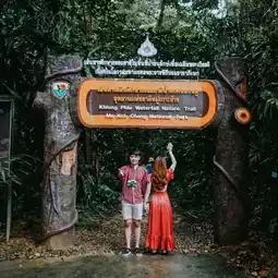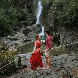 #Natural attractions "Klong Phlu Waterfall" is one of the waterfalls in the Mu Ko Chang National Park area that is still very rich in nature. Importantly, there is water all year round. The distance from the screening point is about 500 meters. It is easy to walk and not difficult. If you are tired, you can stop and take some chill photos. There is a stream flowing along the way. The highlight of this waterfall is the nature that drops down from a high cliff into a clean pool of water. You can see the bottom, which is rocks and sand. I must say that the atmosphere is very good. I guarantee that you will love it.