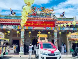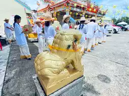 ⭐️ There is a procession to open the first day of the Vegetarian Festival. It's fun. There are dragon parades, lion dances, and a procession of the Bodhisattva Guanyin around the market. There is free food at the shrine and many vegetarian food for sale in front of the shrine. Come and choose and walk around. There are two places. In front of the fountain market, there is also vegetarian food for sale.