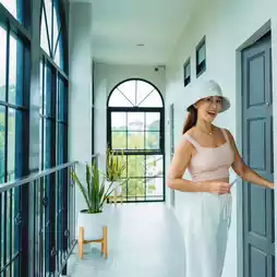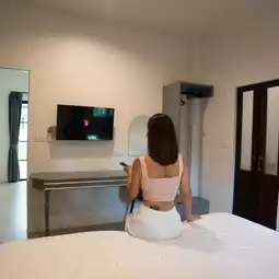 The room is very spacious, clean, and the bed is very soft. There is a balcony, a table outside the balcony, complete equipment, a TV that can play Netflix, a kettle, tea-coffee, a hair dryer, slippers, and breakfast service (add 150 baht) and a spacious parking lot.