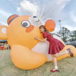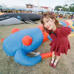 Dazzled by light and sound, eat, shop, take pictures with inflatable dolls