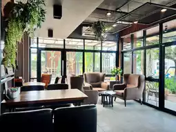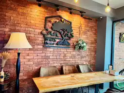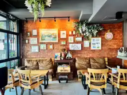 ☕️The cafe is decorated in a comfortable atmosphere, brown tones mixed with red bricks, controlling the tone. The front is glass with a view of the reservoir. The shop is spacious. Come sit and eat a relaxing meal or sit and work. There are both air-conditioned areas and outdoor seating.