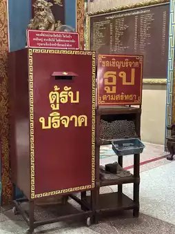 The highlight is the architecture of the shrine, which is designed in the style of a Chinese pavilion, not the original Thai Pillar Shrine, making it unique and standing out from other places in Thailand.