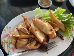 📍The restaurant is located in Trat town, but you have to drive a bit further because the restaurant is right on the edge of the mangrove forest. You can see the sea, mangrove trees, and many fishing boats parked here. In the evening, there is a service to take a boat to visit the mangrove forest. It's a pity that we went during the holiday season, so we didn't get to take the boat.😅