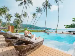 Rest Sea Resort Koh Kood (Rest Sea Resort) is a chic accommodation that emphasizes privacy, perfect for a weekend getaway. It has received SHA certification and is located at Ao Phrao, adjacent to a riverside community where the river meets the sea. The resort's decor focuses on natural materials, primarily wood, combined with white tones that look beautiful and soothing from any angle. There are plenty of beautiful photo spots as well. The resort offers villa-style accommodations in four different styles, all designed to blend with nature. Additionally, there are various activities to choose from, such as swimming in the private beach, kayaking, paddleboarding, or even snorkeling right off the beach with free equipment provided.