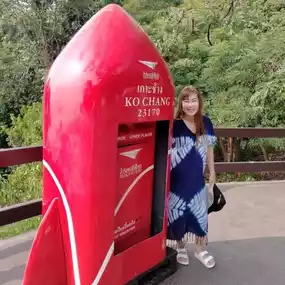 ✨️ Hello, today I will take you to review on Koh Chang. Don't miss the Kai Bae viewpoint, which is the red rocket-shaped mailbox. The mailbox will stand out on the viewpoint balcony with a clear blue sea as a backdrop. The contrasting colors are very beautiful when taking pictures. And with the unique rocket shape, this mailbox looks even cuter.