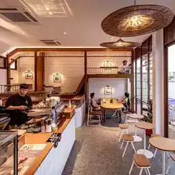The shop’s signature menu is seafood noodles with onsen eggs.