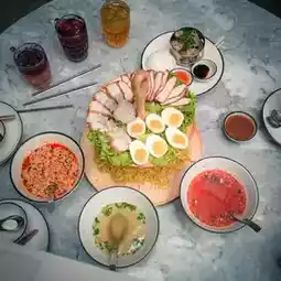 But I personally like the menu of red pork noodles, minced pork, onsen eggs, and tom yum.