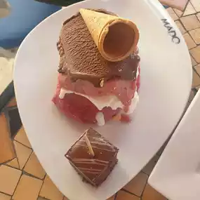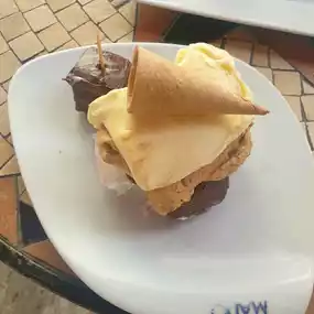 The price range is a bit high, but the thick ice cream is a proper dessert and tastes good.