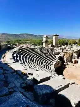 🏛️ There are two features here. One is that this is the ancient Lycia civilization, but it is also influenced by Greek, Roman, and Byzantine civilizations, which can be reflected in the architecture. The second is that the sarcophagus and theater coexist, and the columnar sarcophagus is a feature.