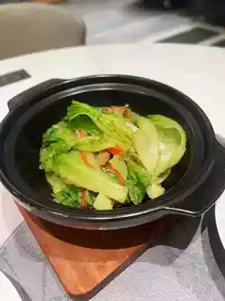 The lettuce is green and crisp, and can keep the pan in a hot pot. The shrimp sauce flavor is very prominent, plus there are shrimp, garlic, chili and other ingredients, which is savory and delicious enough.