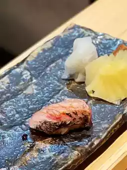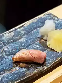 Aged for ten days, with a moderate amount of fat and no tendons, melts in the mouth with a rich fish flavor, paired with kelp salt.