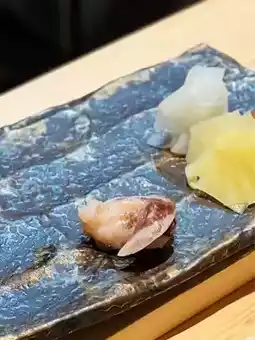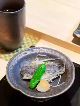 From the Izu Peninsula, with a particularly strong fish flavor, the oil aroma is enhanced after searing, paired with plum sauce.