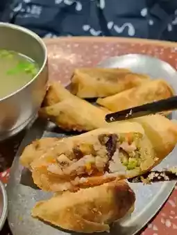 The spring rolls are hot and spicy, the skin is thin and crispy, and the fillings are fresh and fragrant.