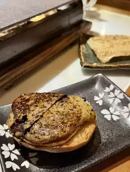 Caramel Green Apple Foie Gras Toast, the sweet and sour green apple meets the rich and smooth goose liver, great! The mint grilled rice balls are crispy on the outside and soft on the inside. Salt-grilled mustard and salt-grilled red yam are both healthy choices for vegetables.