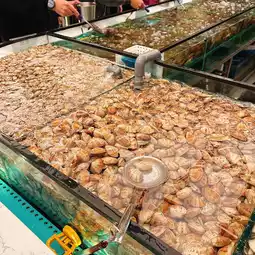 The seafood is very fresh. Abalone is the best. The meat is sweet and chewy.