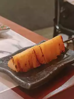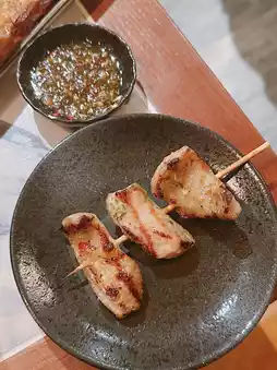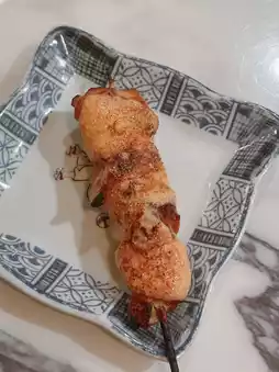 Sauced Grilled Chewy Rice Cake Roll🍡 A la carte $26💰Thinly sliced pork wrapped around rice cake😉 savory, sweet, and chewy👍🏻