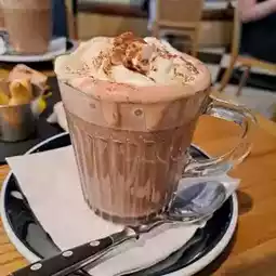 The drink is hot chocolate, rich and delicious, sweet and heartwarming.