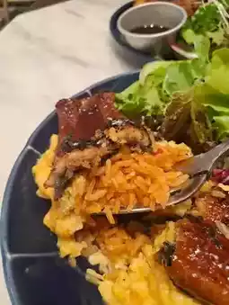 The eel is soft and tender, with delicious meat. The surface of the fish is grilled, with a slightly charred and roasted aroma. The scrambled eggs are smooth and dense, the Italian red rice has a moderate hardness and softness, and the rice grains absorb the sweet and sour taste of the tomato sauce, adding to the overall flavor.