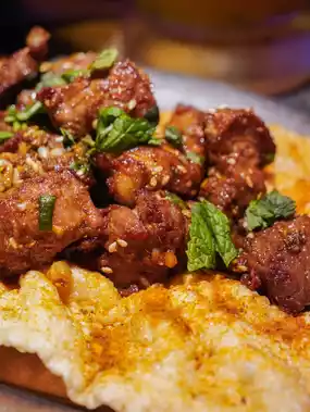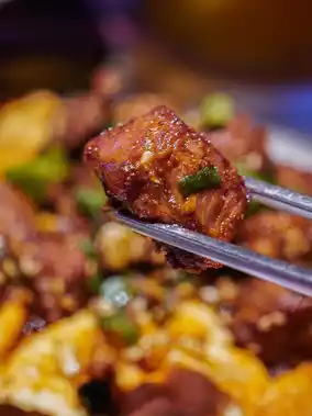 The flavor of the meat is mixed with the flavor of spices. It tastes better when eaten with the crispy chips at the bottom.