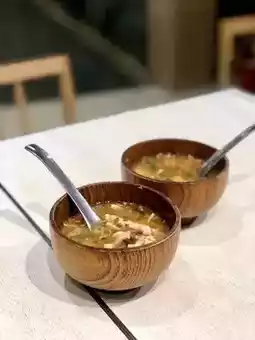 The numbing egg is a soft-boiled egg, moist and smooth. The white rice with the aroma of seaweed is rich in taste.