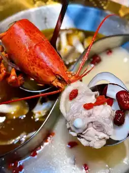 We chose the Yuen Yuen Hot Pot (+$48): 🦞 Lobster Head Hot Pot ➕🐔 Sweet Coconut Chicken Hot Pot 🥥 The soup is rich in ingredients, very rich 👍🏻