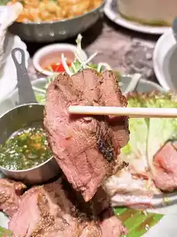 The soup of the boat noodles is rich, the wagyu beef is tender enough, and the noodles are served with phoenix flour