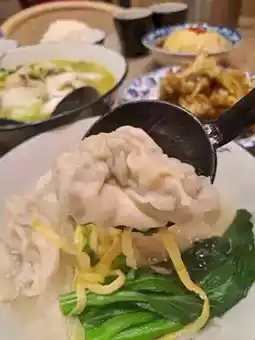 The noodles are soft and chewy, and the vegetable and meat wonton fillings are full of flavor.