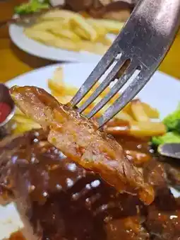 The steak had a great texture and was paired with a rich black pepper sauce. You can choose between rice, pasta, or fries as a side.