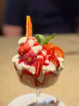 The parfait is covered with layers of strawberries🍓 with smooth cream, very attractive🤩