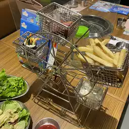 Very eye-catching π The Ferris wheel carries different kinds of food π€ so cute π€ including fries π, seaweed rice rolls, purple sweet potato cakes, fried honey rice cakes, and egg rolls, all kidsβ favorites π Jingyu and Jingnan spin the Ferris wheel while picking their favorite foods π They finished eating quickly and had a great time ππ»