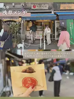 ✔︎ Asakusa Menchi {minced meat cutlets} open | 10:00-19:00 closed | None. The meat and onions are delicious✨ Minced meat cutlets that overflow with gravy every time you bite into them🤤