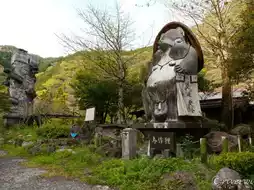The entrance is marked by a giant tanuki "Yosaku Tanuki" and a dragon object.