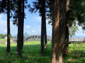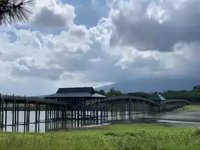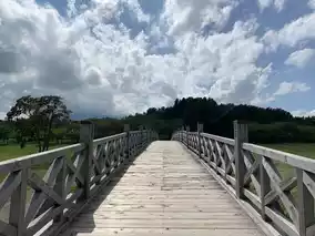 This is called the Tsurunomai Bridge located in Tsuruta, Aomori prefecture. The bridge is a set of three wooden bridges connected together nicely, each arching gracefully over Tsugaru Fujimi Lake, one of the largest reservoirs in the region. You can also enjoy the view of Mount Iwamoto while crossing the bridge. It is more convenient to travel by car. I would suggest to not visit during summer as the river may look a tad dry 🤣