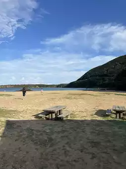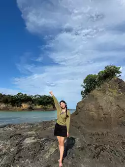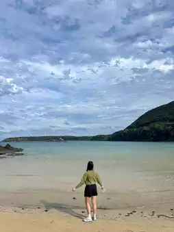 Miuda Beach, so refreshing and clear that it makes you want to dive right in at first sight! On sunny days with calm winds, it's the perfect spot for snorkeling and enjoying the gentle waves. In the afternoon, the water recedes slightly, making it shallow enough to walk to the rocky areas where you can observe and collect fish, crabs, and hermit crabs. You can swim, have a seaside picnic on the sandy beach, and enjoy the serene atmosphere. 🩵 The beach is equipped with showers and foot-washing stations, and there's a small food truck in the parking lot where you can grab a refreshing shaved ice or iced coffee while admiring the ocean—pure bliss! -
